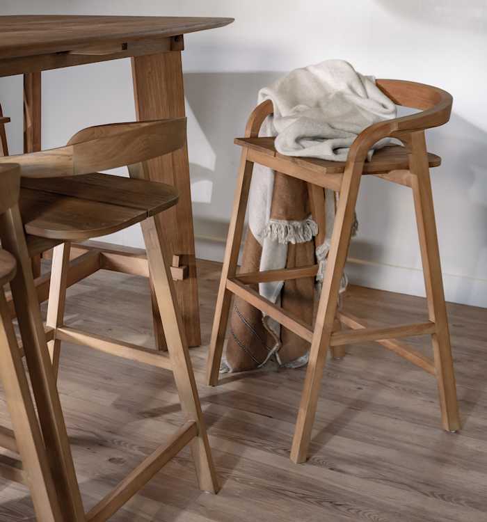 The Classy Bibo Bar Chair is a simple, clean and modern design, with natural elegant reclaimed teak ‘wishbone’ inspired arms and frame detailing. Designed to compliment the Classy Chair range.