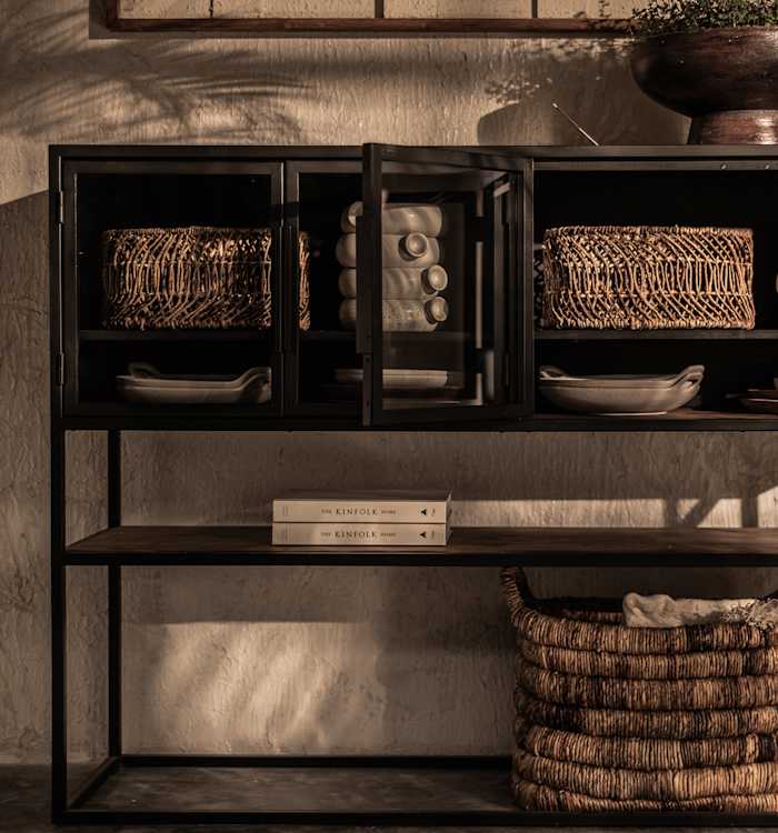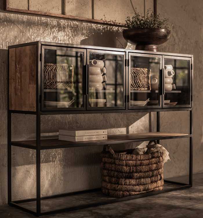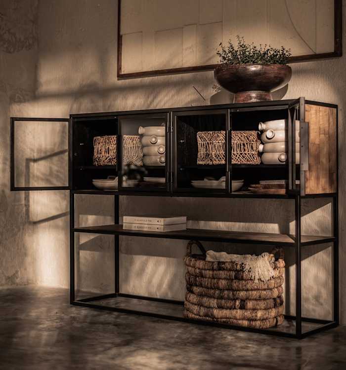 The Salvage High Dresser is an exquisite modern piece that is very versatile in use, while complementing your interior at the same time. The small reclaimed teak slats in various color tones show the true craftsmanship and character of the wood and are the perfect complement to the black matte finished iron frame.